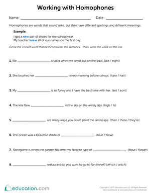 Homophones can sometimes confuse younger students, but this exercise will teach them how to differentiate between similar words.