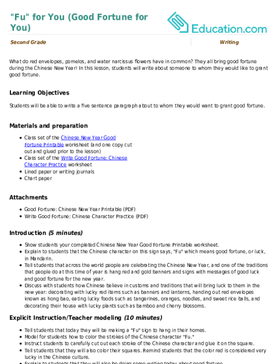 They all bring good fortune during the Chinese New Year! In this lesson, students will write about someone to whom they would like to grant good fortune.