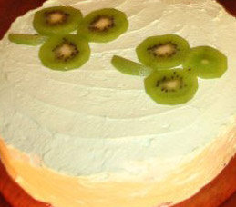 - When the cakes are cool, lay the first one on a cutting board. Cut off a bit of its top so that you'll have a flat surface and then frost it with the whipped cream. (This is the bottom layer of your two layer cake.) Tie one piece of "treasure" or trinket to some, or all (if you have younger kids) of the ribbons. Then lay the ribbons on top of the cake, with the trinkets resting in the center. The trinkets should not overlap. It should look like a sun with beams radiating out of the center.