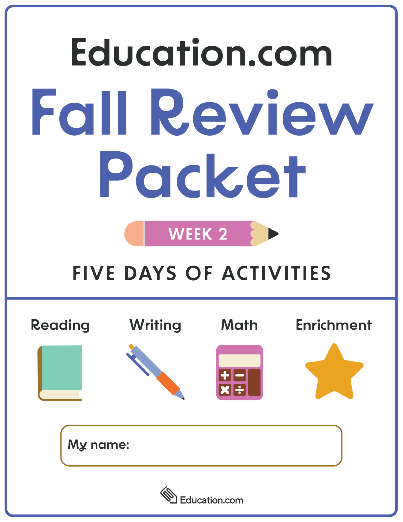 This Second Grade Fall Review Packet - Week 2 provides five full days of learning activities in reading, writing, math, and other fun topics.