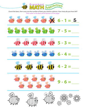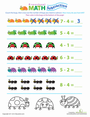 Preschool Math: Take Away the Bugs makes learning subtraction easy and fun by using picture diagrams to introduce subtraction to preschoolers.