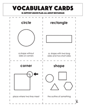 Use these vocabulary cards with the EL Support Lesson: All About Rectangles.